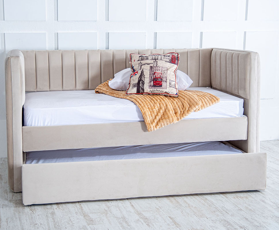 £499.00£599.00Jolie Upholstered Bed Frame With Pull Out Trundle Guest Bed Elevate your sleeping experience with the Jolie Upholstered Bed Frame. This versatile bed boasts a hidden trundle that pulls out...